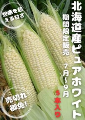 北海道産【ピュアホワイト】白いとうもろこし5本 期間限定