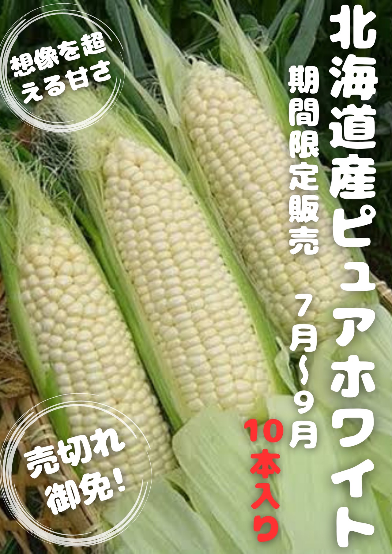 北海道産【ピュアホワイト】白いとうもろこし10本 期間限定